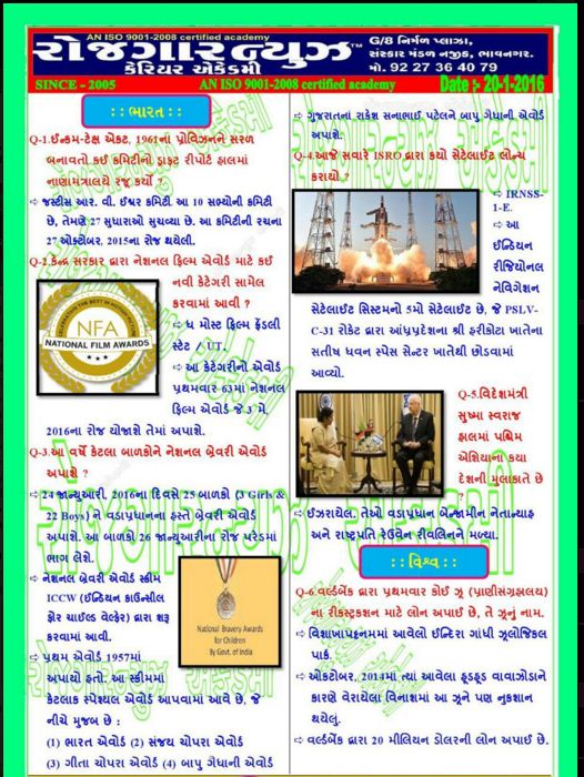 CURRENT AFFAIRS DATE 20-1-2016 BY ROJGAR NEWS ACADEMY