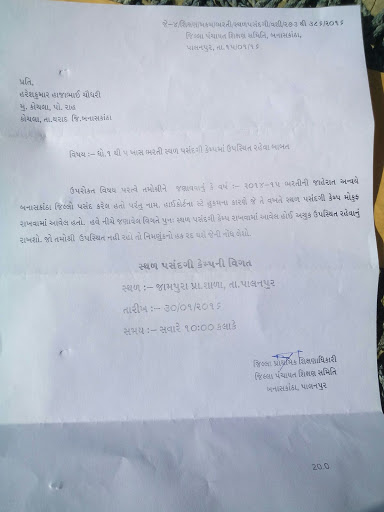 LOWER PRIMARY BHARTI 2014/15 : STHAL PASANDAGI MATE HAJAR RAHEVA BABAT